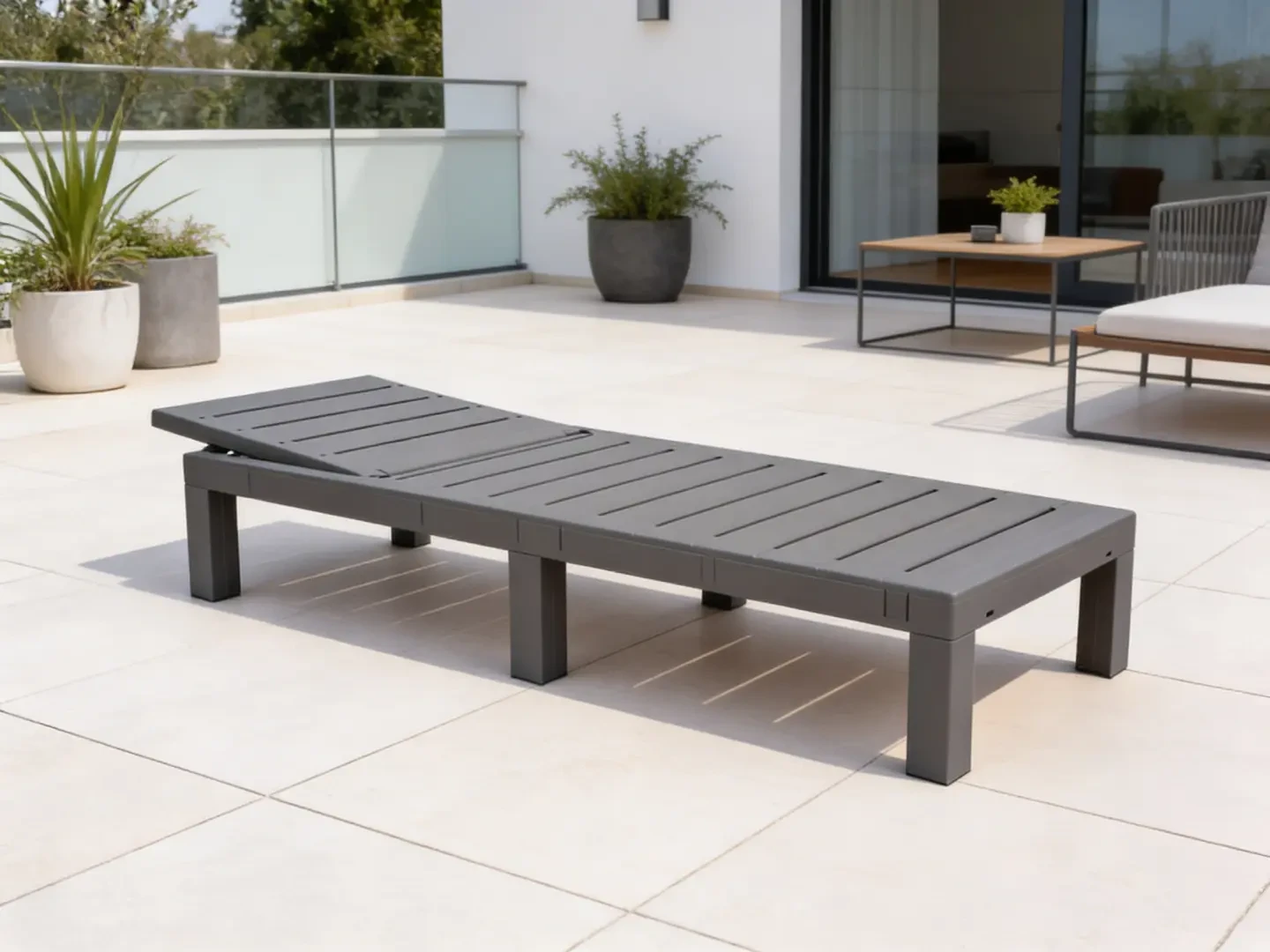 Leżak ogrodowy składany LS02 z tworzywa sztucznego na taras i plażę szary