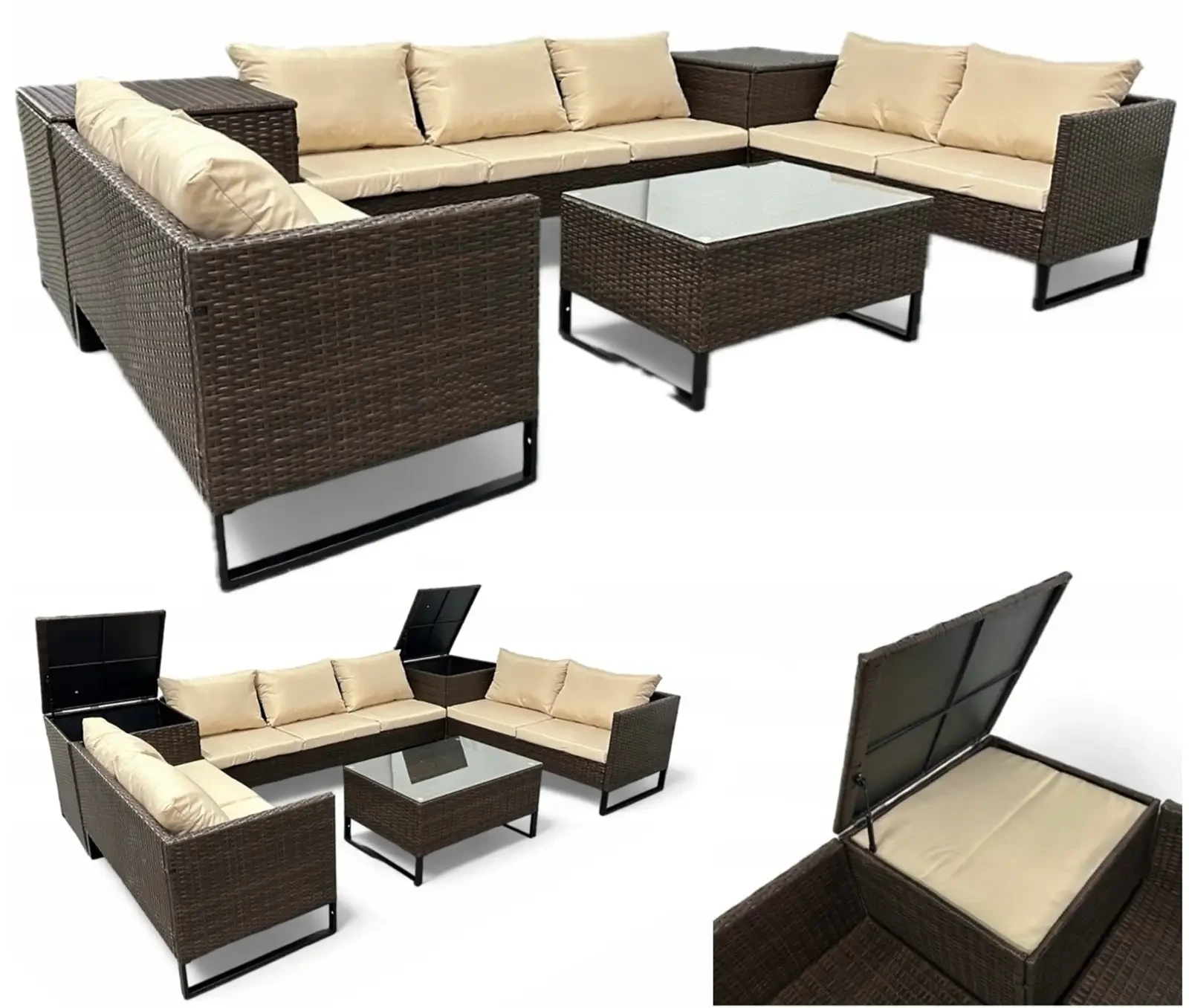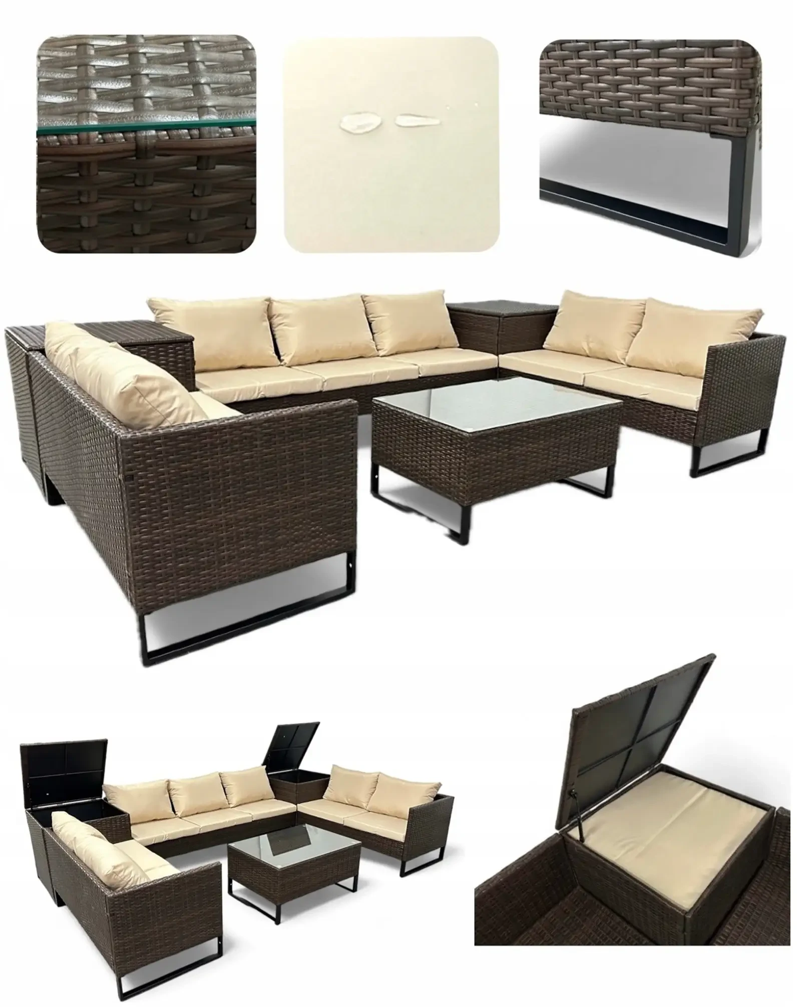 Narożnik ogrodowy Big w kształcie U z technorattanu zestaw Brąz