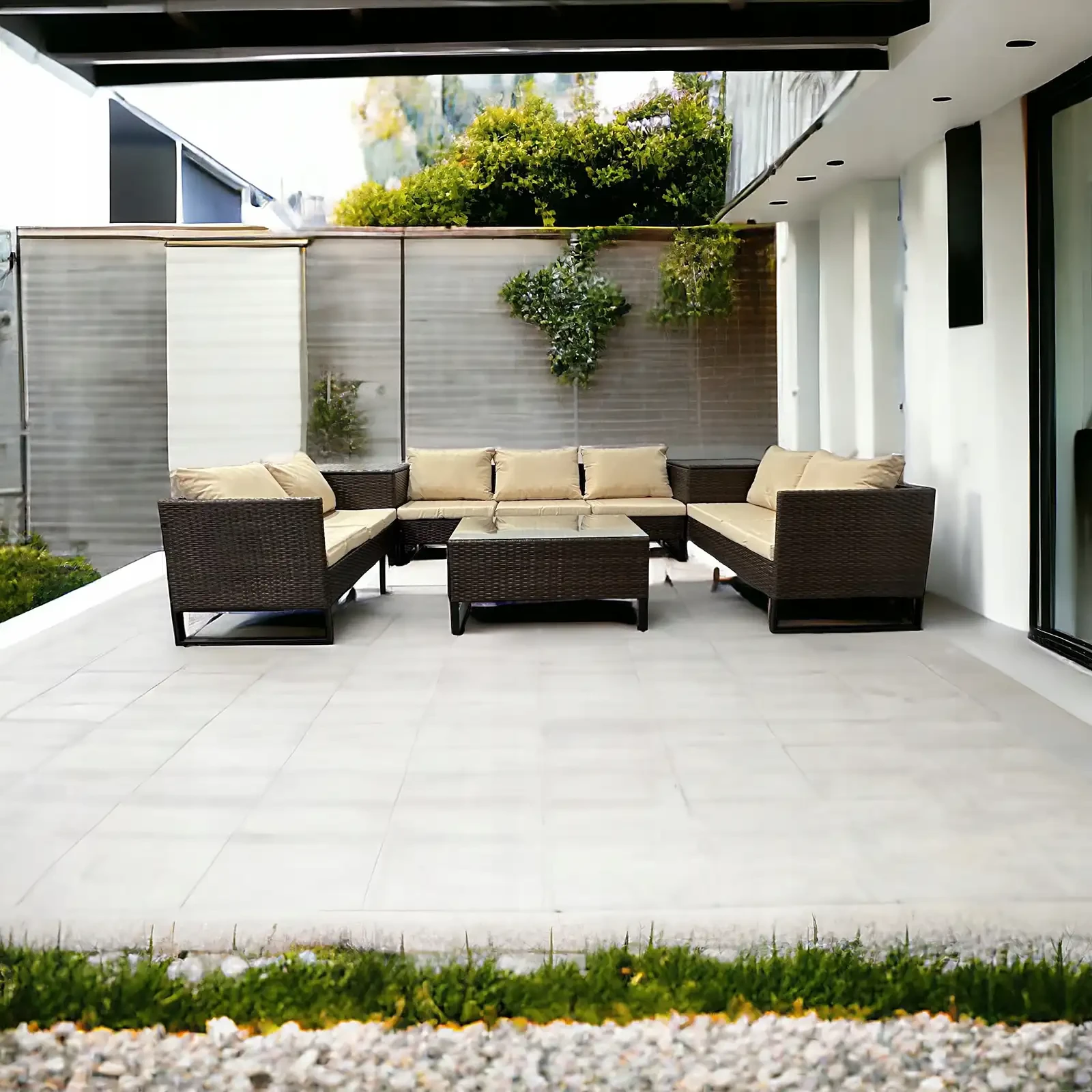 Mega komfortowy dwustronny narożnik Big w kształcie litery "U" z technorattanu wyposażony w miękkie poduchy jest stworzony do relaksu. Pomieści wszystkich gości i zapewni im wygodę nawet podczas dłuższego odpoczynku. A jeśli planujesz chwilę dla siebie stolik ze szklanym blatem pomieści książki, czasopisma i pyszną kawę, czyli wszystko to co do relaksu niezbędne. Świetnie sprawdzi się na dużym tarasie i będzie stanowił wspaniałą bazę do urządzenia wymarzonego kącika do relaksu.