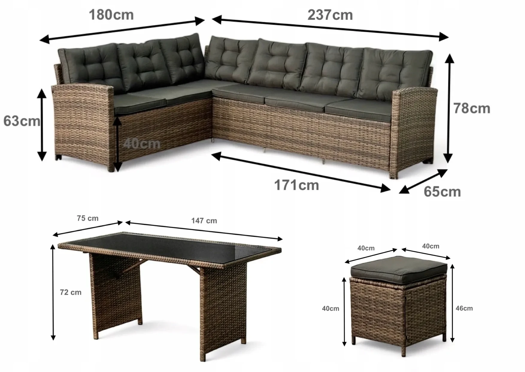 - Wysokość narożnika: 78 cm
