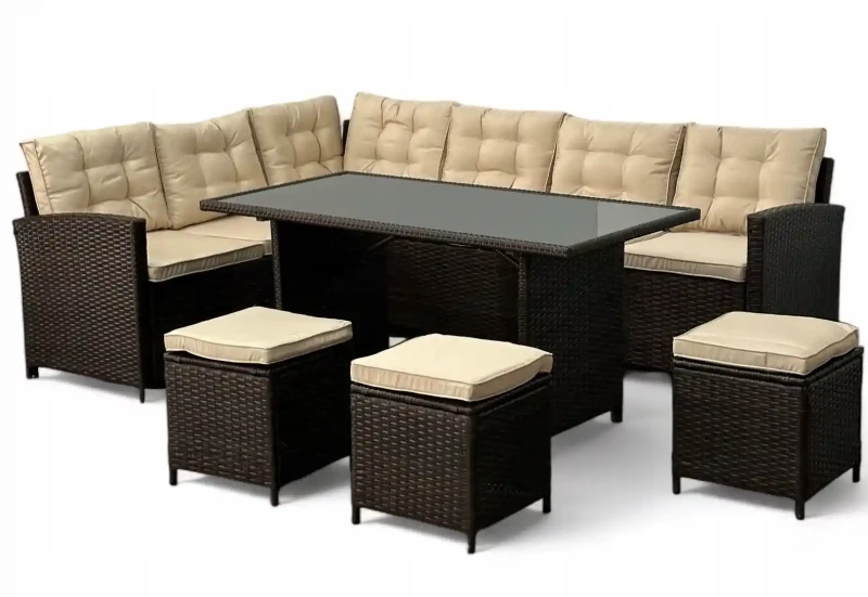 Narożnik ogrodowy technorattan + pufy i stolik Merida Brązowy