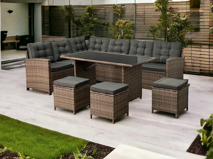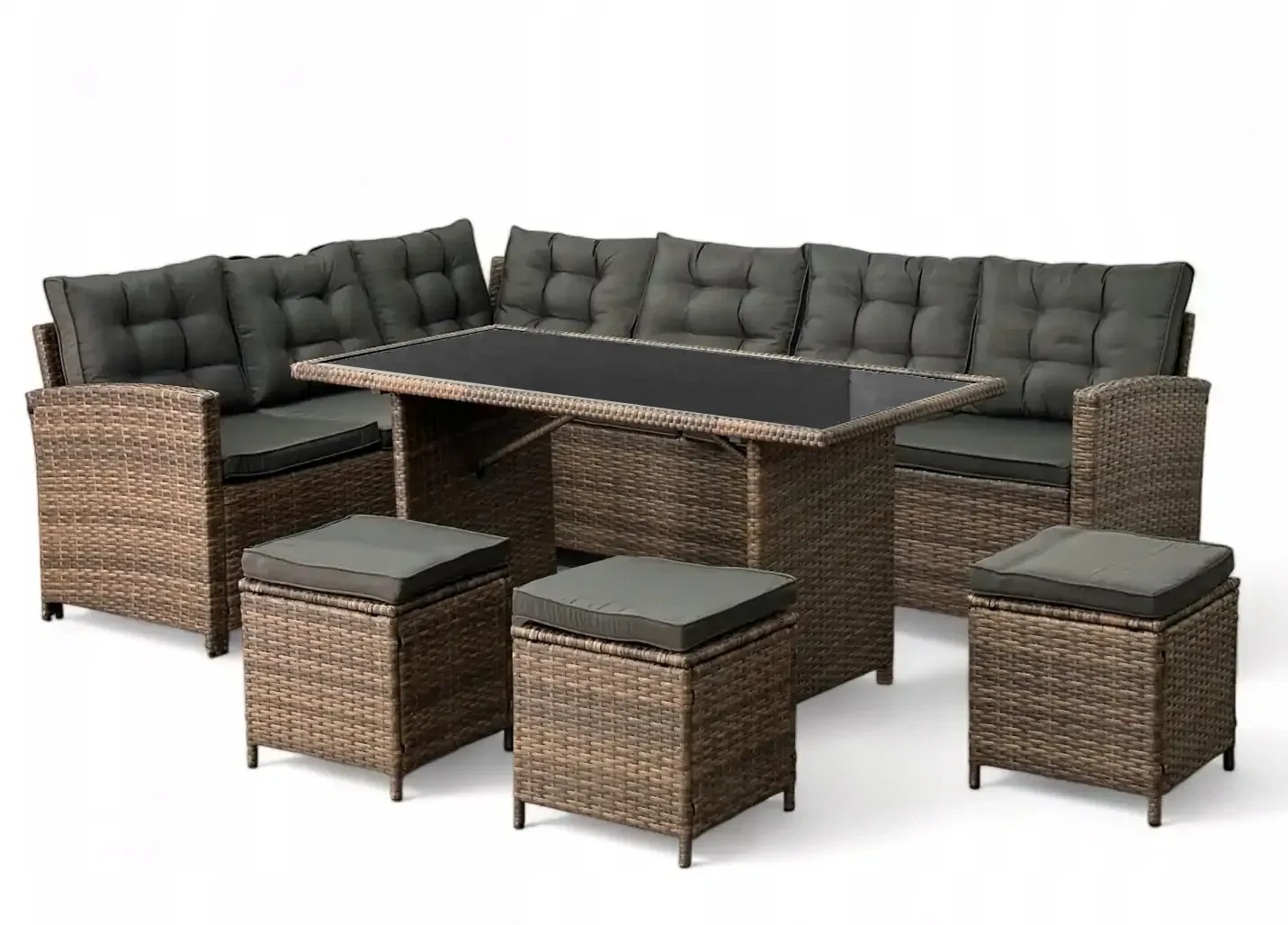 Narożnik ogrodowy technorattan + pufy i stolik Merida Jasny Brąz