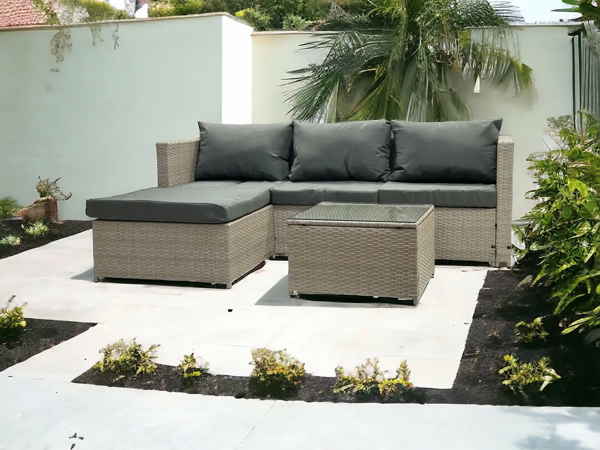 Mega komfortowy dwustronny narożnik Ricoco z technorattanu wyposażony w miękkie poduchy jest stworzony do relaksu. Pomieści wszystkich gości i zapewni im wygodę nawet podczas dłuższego odpoczynku. A jeśli planujesz chwilę dla siebie stolik ze szklanym blatem pomieści książki, czasopisma i pyszną kawę, czyli wszystko to co do relaksu niezbędne. Świetnie sprawdzi się na tarasie i będzie stanowił wspaniałą bazę do urządzenia wymarzonego kącika do relaksu.
