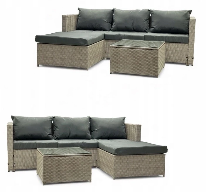 Narożnik ogrodowy z technorattanu dwustronny Ricoco + stolik Jasny Beż