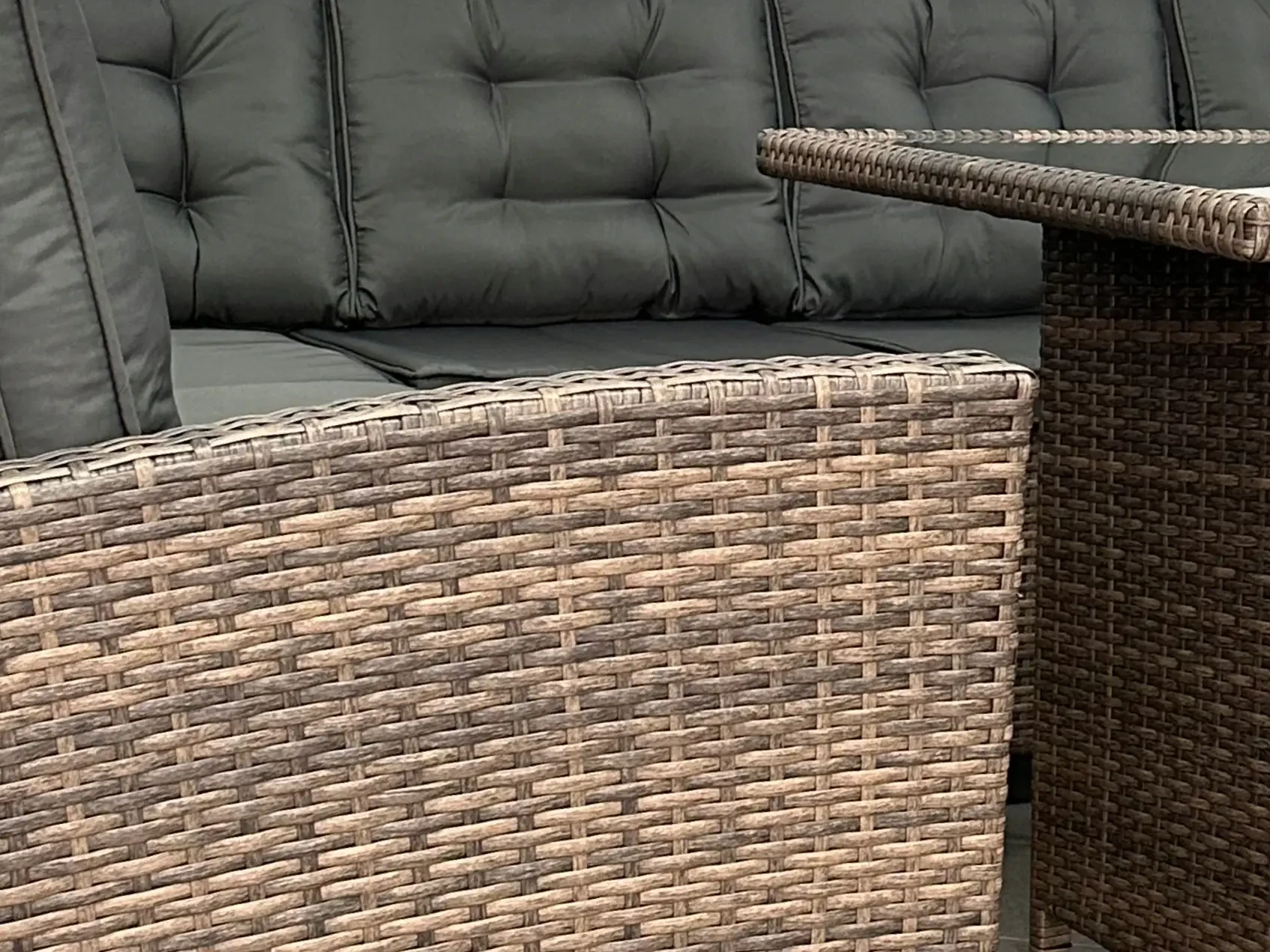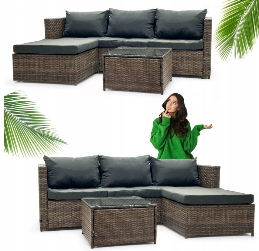 Mega komfortowy dwustronny narożnik Ricoco z technorattanu wyposażony w miękkie poduchy jest stworzony do relaksu. Pomieści wszystkich gości i zapewni im wygodę nawet podczas dłuższego odpoczynku. A jeśli planujesz chwilę dla siebie stolik ze szklanym blatem pomieści książki, czasopisma i pyszną kawę, czyli wszystko to co do relaksu niezbędne. Świetnie sprawdzi się na tarasie i będzie stanowił wspaniałą bazę do urządzenia wymarzonego kącika do relaksu.
