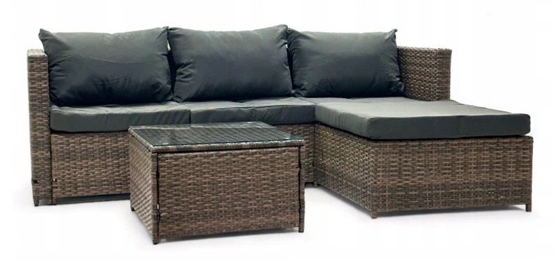 - Wykonany jest z metalowej konstrukcji pokrytej technorattanem