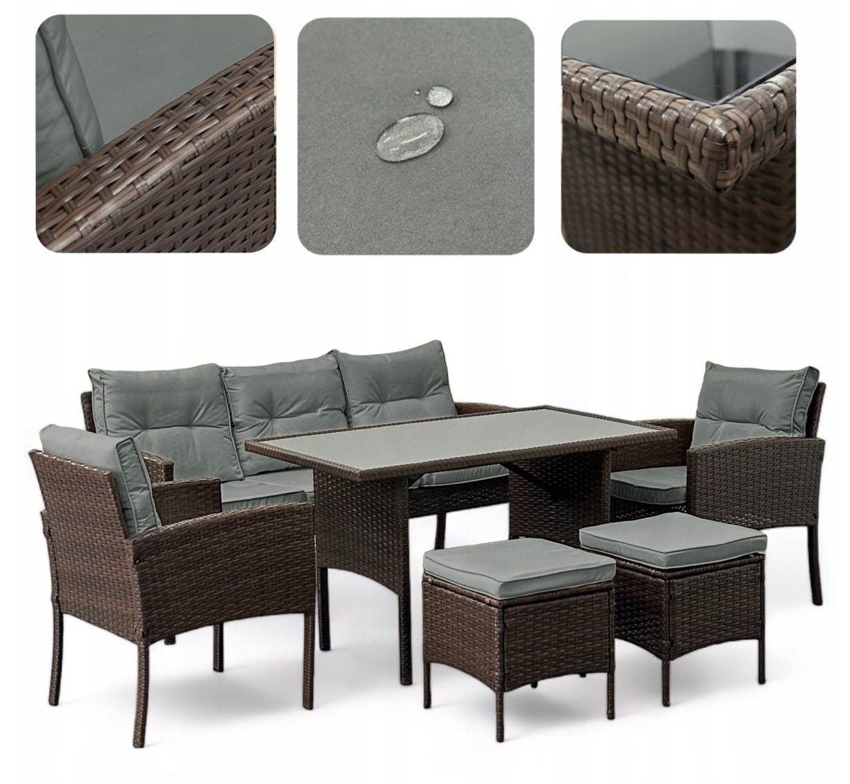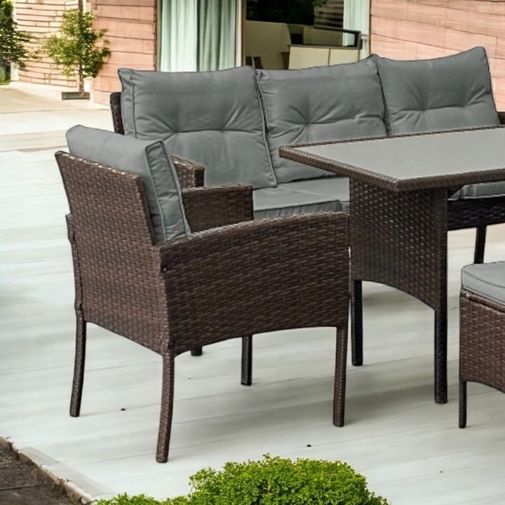 Co wyróżnia Zestaw mebli ogrodowych z technorattanu Puerto Brąz + Szare poduszki: