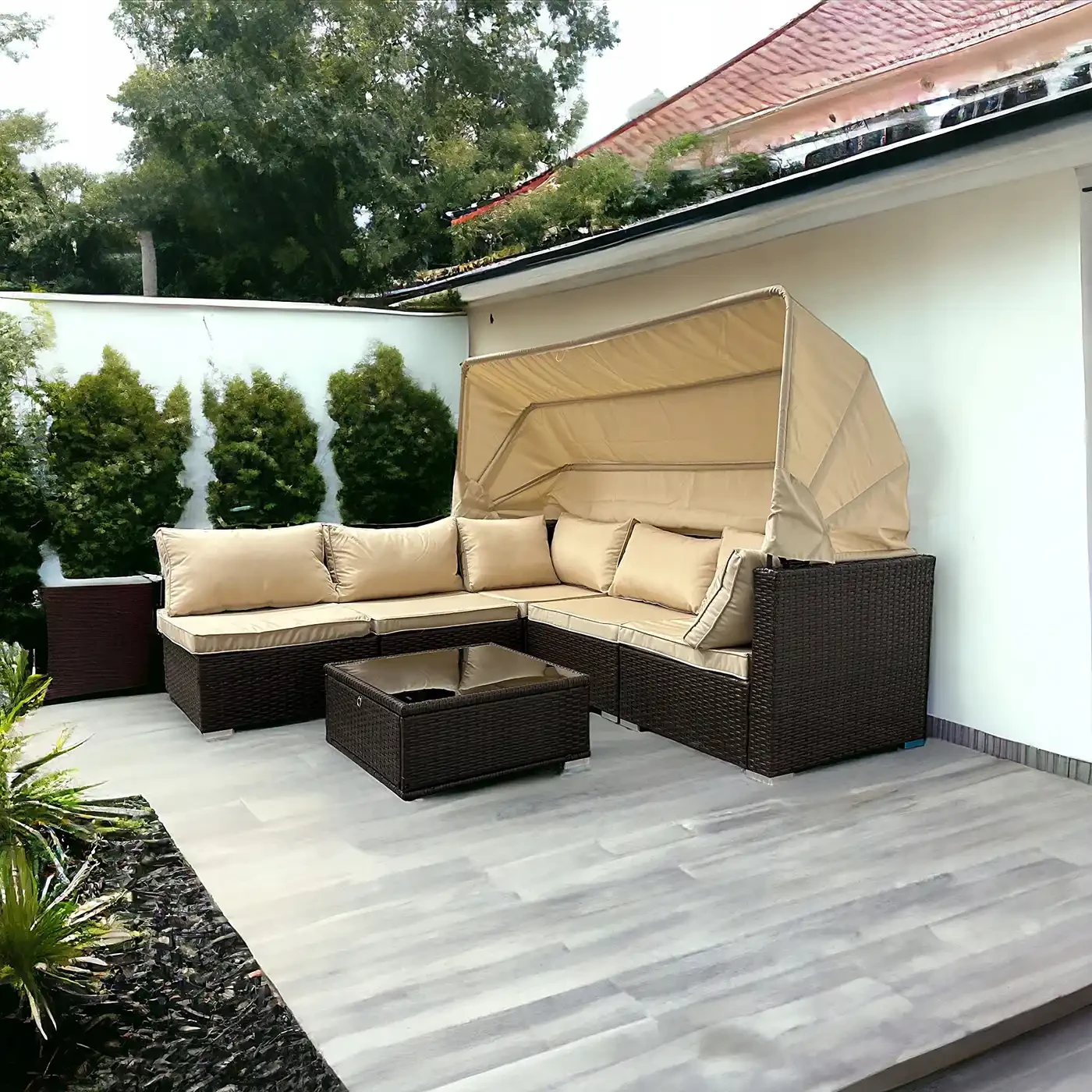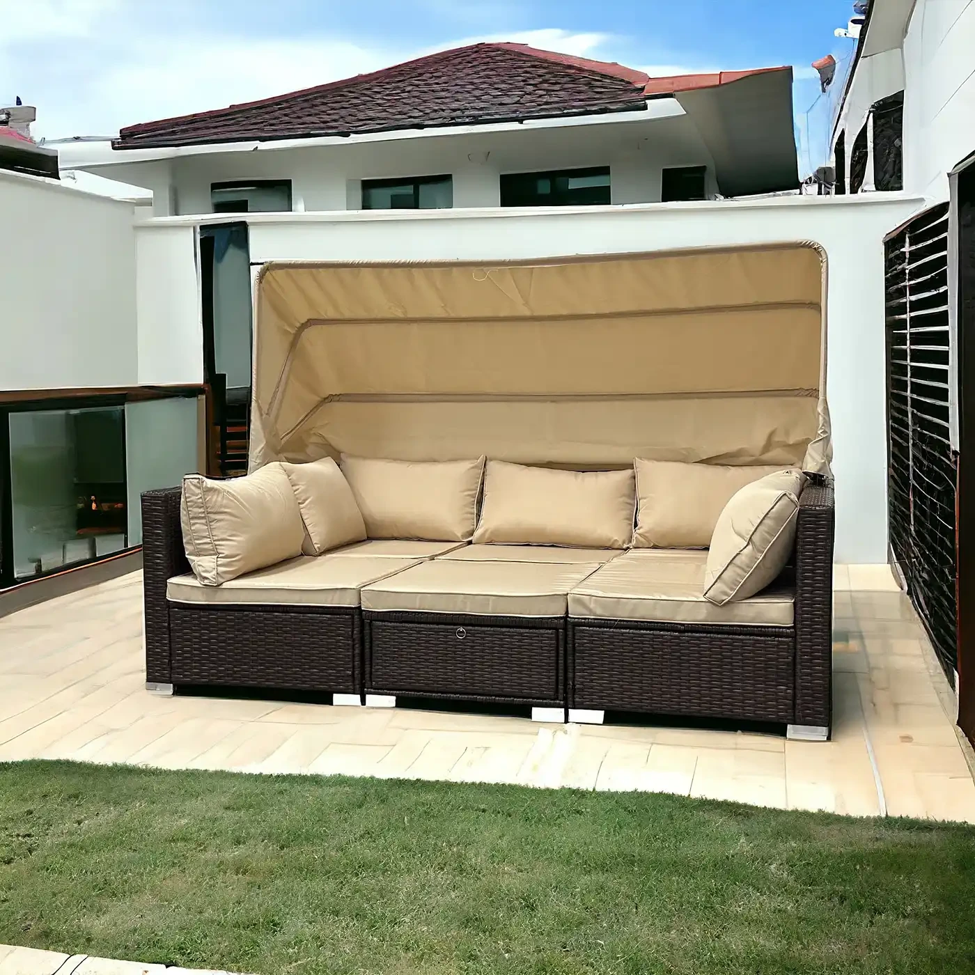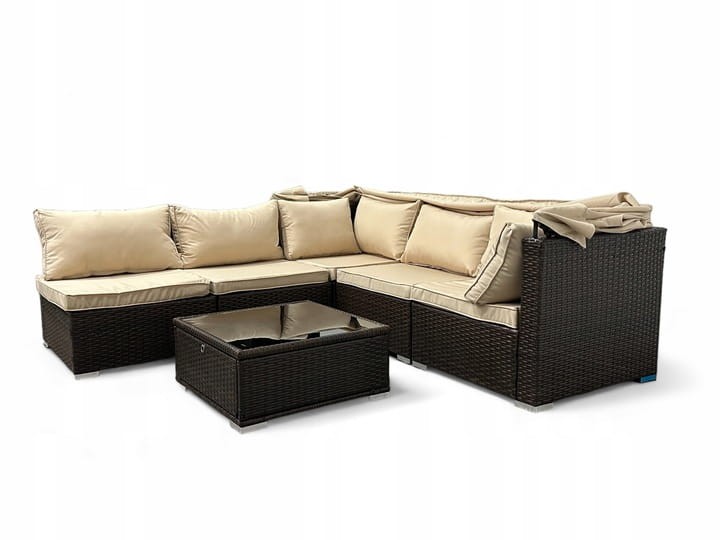 Zestaw ogrodowy wielofunkcyjny Elitar leżanka narożnik + stolik ze schowkiem Brąz