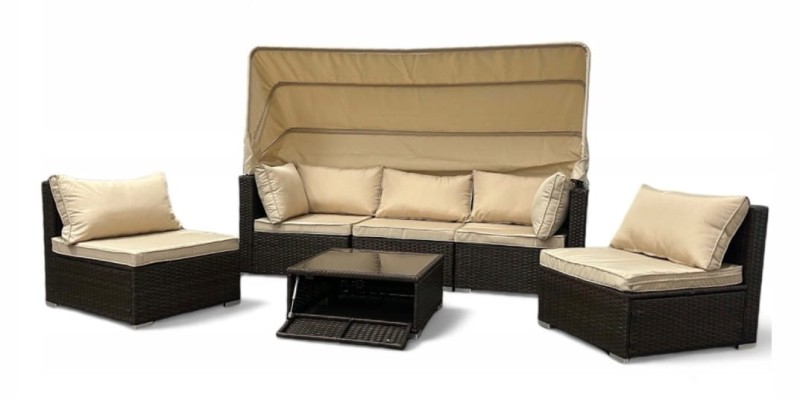 Zestaw ogrodowy wielofunkcyjny Elitar leżanka narożnik + stolik ze schowkiem to propozycja dla dużych rodzin lub otwartych domów, gdzie przyjmuje się dużo gości. Można go zestawiać tak w konfiguracji jadalnianej jak wypoczynkowej dla jak największej wygody użytkowania. Uniwersalny fason oraz odporny na warunki atmosferyczne technorattan gwarantuje, że zestaw będzie latami cieszył oko swoim dobrym stanem. Wygodna sofa, która bez problemu może zamienić się w narożnik w zestawie posiada jeszcze stolik z blatem z hartowanego szkła oraz specjalnym schowkiem. Z tym zestawem stworzenie strefy komfortu to pestka. Miękkie, puszyste regulowane poduszki i wygodne siedziska sprawią, że niechętnie będziesz ją opuszczać.