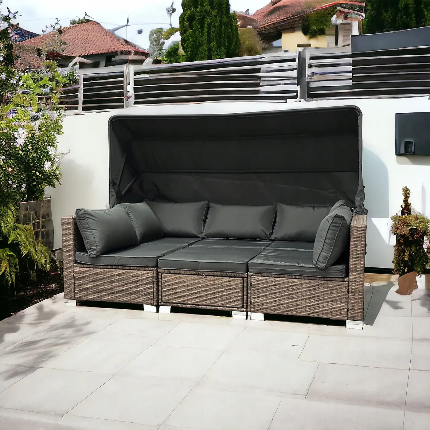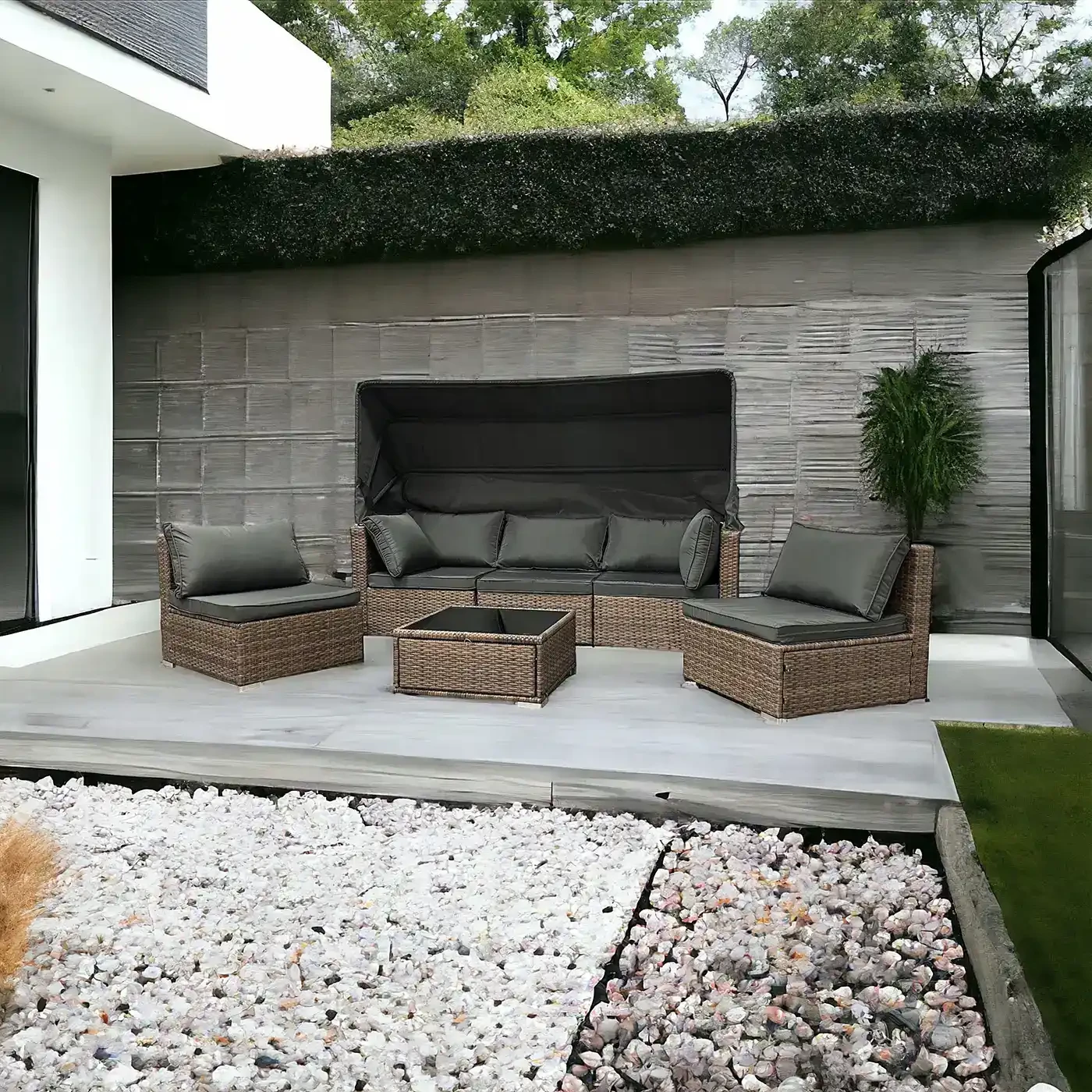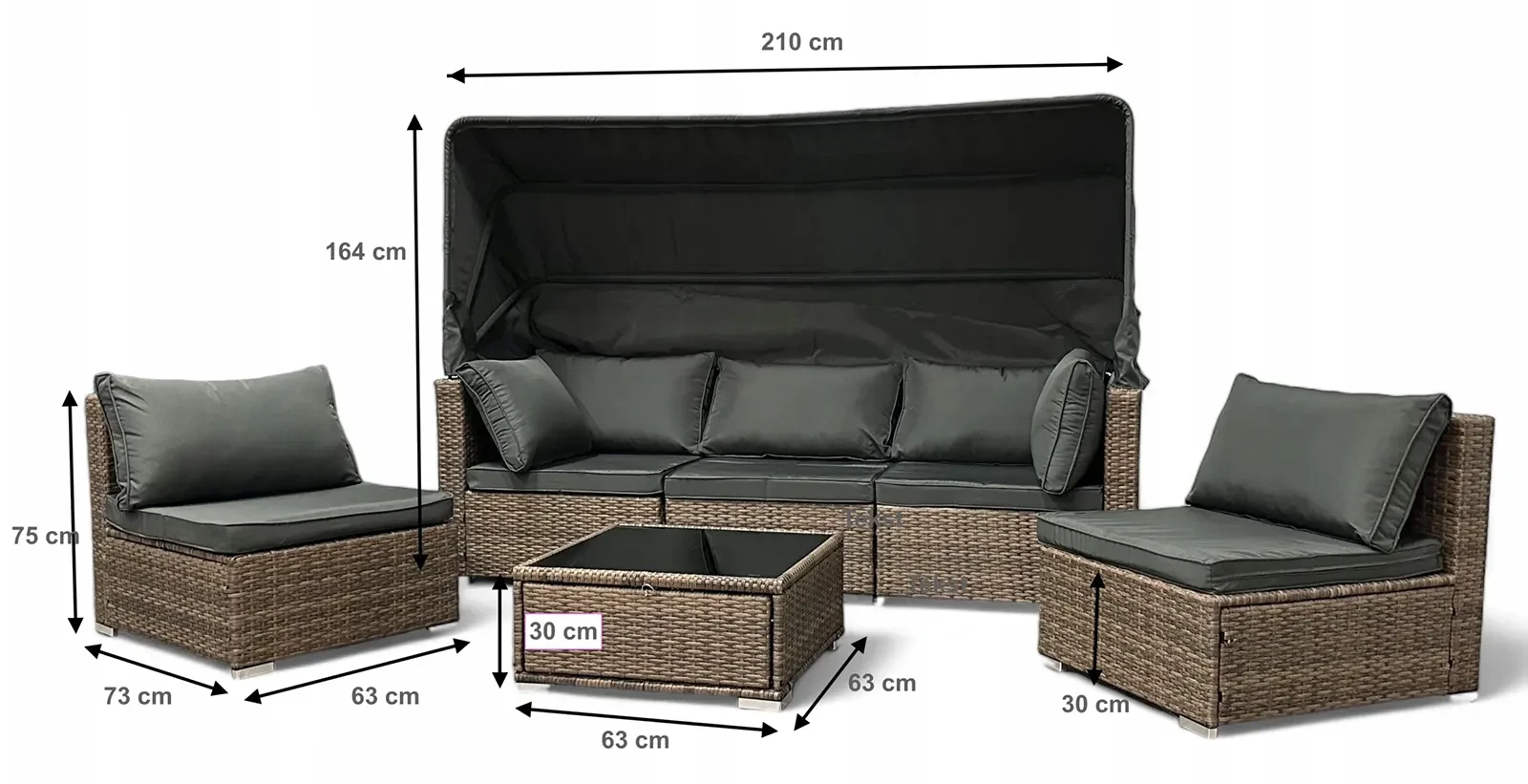 - Wykonany został z metalowej konstrukcji pokrytej technorattanem