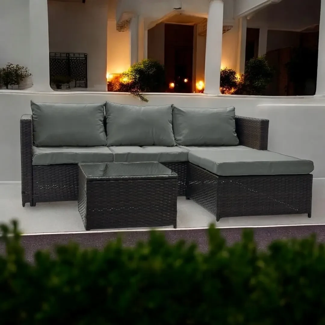 Mega komfortowy dwustronny narożnik Ricoco z technorattanu wyposażony w miękkie poduchy jest stworzony do relaksu. Pomieści wszystkich gości i zapewni im wygodę nawet podczas dłuższego odpoczynku. A jeśli planujesz chwilę dla siebie stolik ze szklanym blatem pomieści książki, czasopisma i pyszną kawę, czyli wszystko to co do relaksu niezbędne. Świetnie sprawdzi się na tarasie i będzie stanowił wspaniałą bazę do urządzenia wymarzonego kącika do relaksu.
