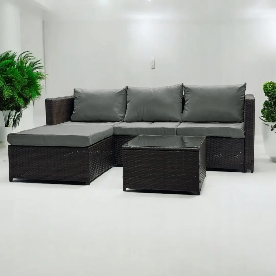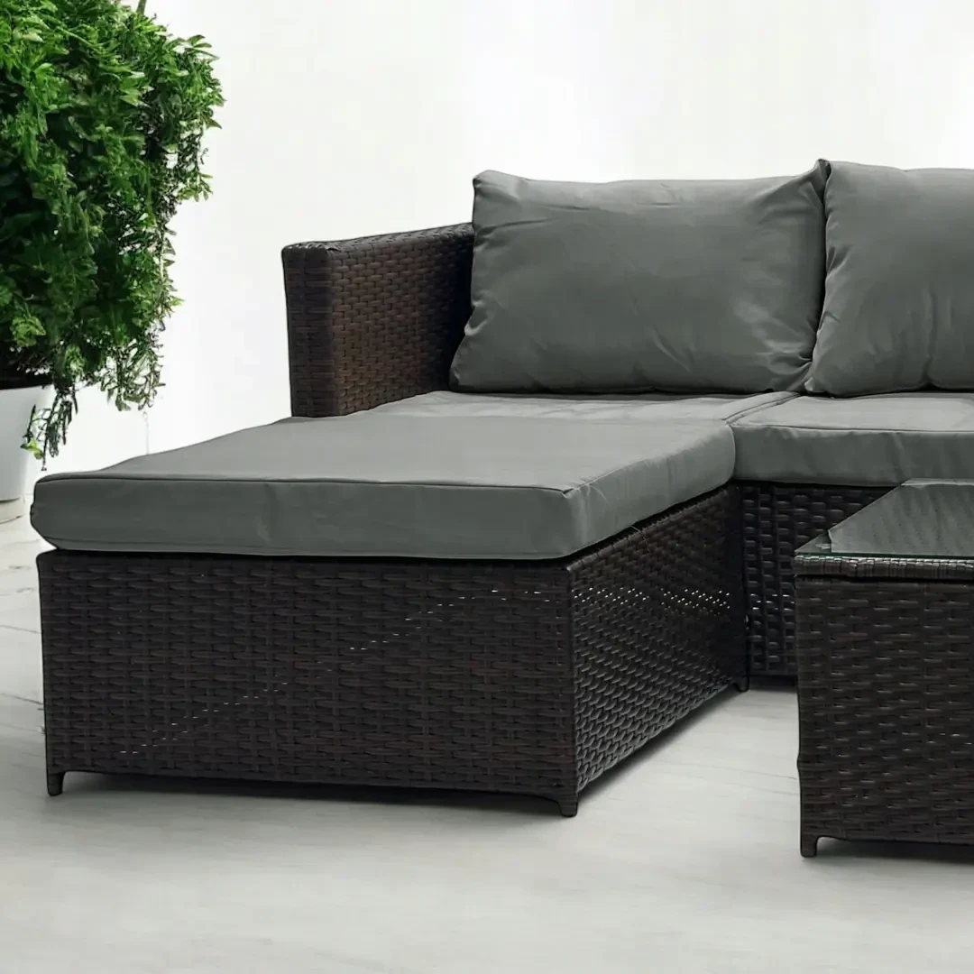 Stan produktu outletowego Narożnik ogrodowy z technorattanu dwustronny Ricoco + stolik Brąz :