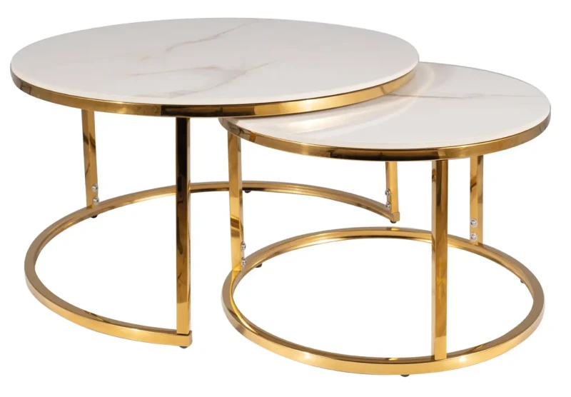 Zestaw stolików Portafino A biały efekt marmuru/złoty OUTLET
