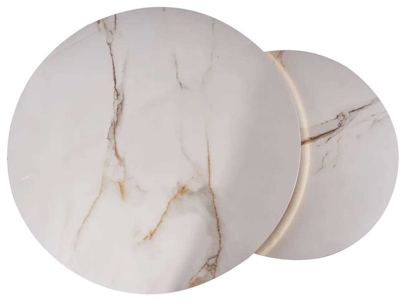 Zestaw stolików Portafino A to klasyczna i ponadczasowa propozycja nowoczesnych mebli do salonu. Komplet składa się z dwóch okrągłych stolików o różnych wymiarach. Blaty stolików Portafino A zostały precyzyjnie wykonane z wysokiej jakości ceramiki. Ponadto charakteryzują się one zastosowanym efektem marmuru w odcieniach bieli, co dodaje zestawowi wyjątkowego charakteru i nowoczesnego designu. Niebanalne stelaże ze stali nierdzewnej zapewniają stabilność stolików. Prosty i minimalistyczny wygląd sprawia, że zestaw stolików Portafino A doskonale wkomponuje się zarówno w nowoczesne, jak i bardziej tradycyjne wnętrza.