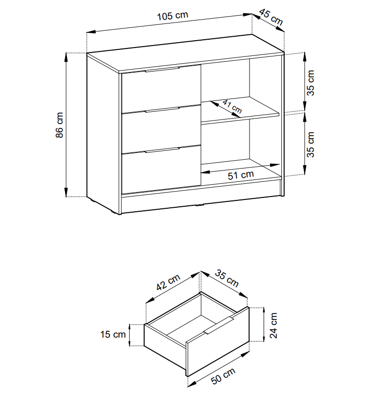- trzy szuflady - stanowią dodatkowe miejsce do przechowywania