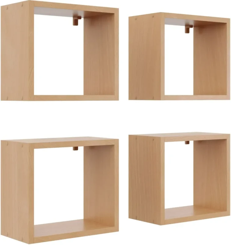 Stan produktu outletowego Zestaw 4 półek wiszących Huron wybarwienia drewna kolor buk: