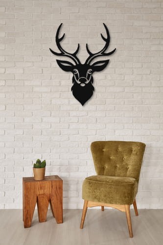 Dekoracja ścienna Jeleń to dodatek, który idealnie wpasuję się w Państwa aranżację. Unikatowy, pełen harmonii obraz wykonana ze stali pokryty strukturalną powłoką w kolorze czarnego matu idealnie dopełniający każde pomieszczenie. Dekoracja o grubości 1,5 mm. mocowana za pomocą ząbkowanej zawieszki.
